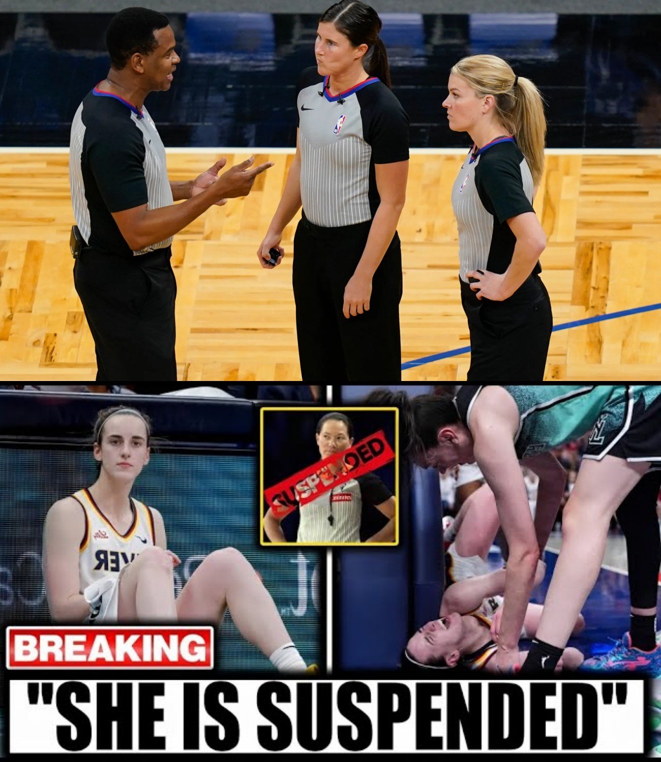 In a dramatic turn of events that has sent shockwaves through the Women’s National Basketball Association (WNBA), a referee has been suspended following the release of shocking footage showing a dangerous play that resulted in a severe injury to Caitlin Clark, the standout guard for the Iowa Fever.